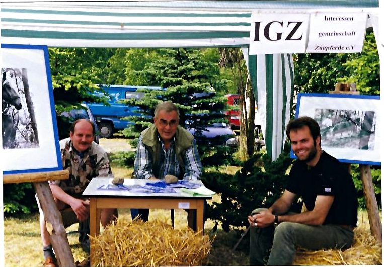 Als wir 1998 vom Forstamt Rügen die 2. Holzmesse auf Rügen organisiert hatten, fragte ich als langjähriges Zugpferdmitglied bei der IGZ an, ob sie nicht Lust hätten einen Stand auf unserer Messe zum Thema „Pferdeeinsatz im Wald" zu besetzen und sich vielleicht auch vorstellen könnten eine Exkursion im Wald mit Pferd zu begleiten.